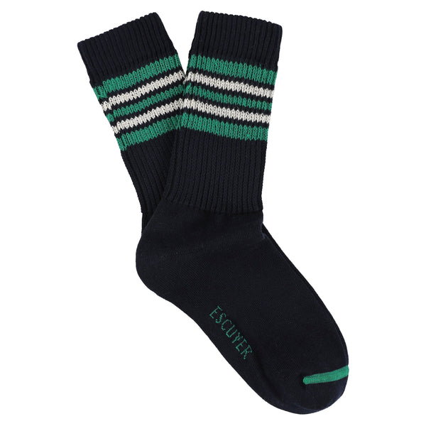 Women 5 Stripes Socks - Black / Green / Ecru